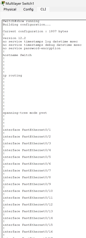 使用show running依次查看Router1、Router2、Router4和三层交换机S3-1的配置清单: