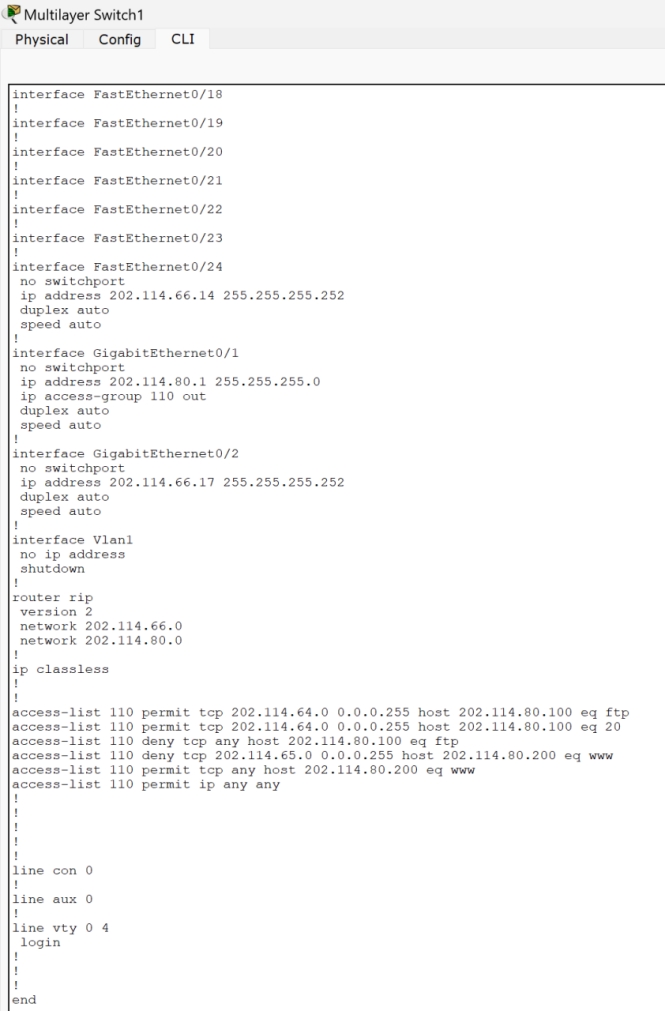• PC2->Server1 FTP(202.114.64.0可以访问Server 1的FTP):